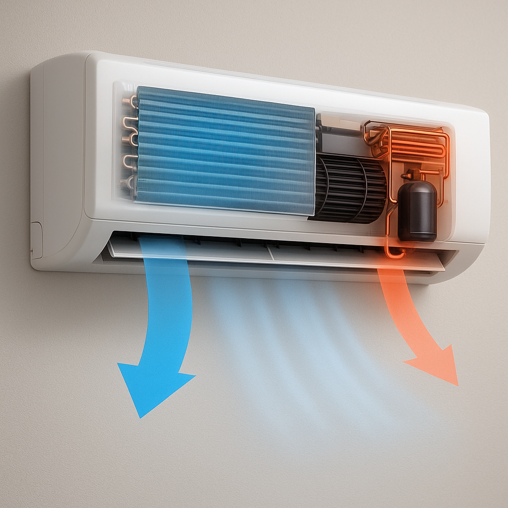 Chłodzenie powietrza opiera się na transferze ciepła z wewnątrz na zewnątrz budynku. Gdy czynnik ogrzewa się w parowniku, wiąże się to z obniżeniem temperatury przepływającego powietrza. Wentylatory wymuszają cyrkulację, dzięki czemu schłodzone powietrze trafia do wszystkich części pomieszczenia. W trybie grzania urządzenia typu pompa ciepła odwracają kierunek przepływu czynnika, wykorzystując cykl inwersyjny.